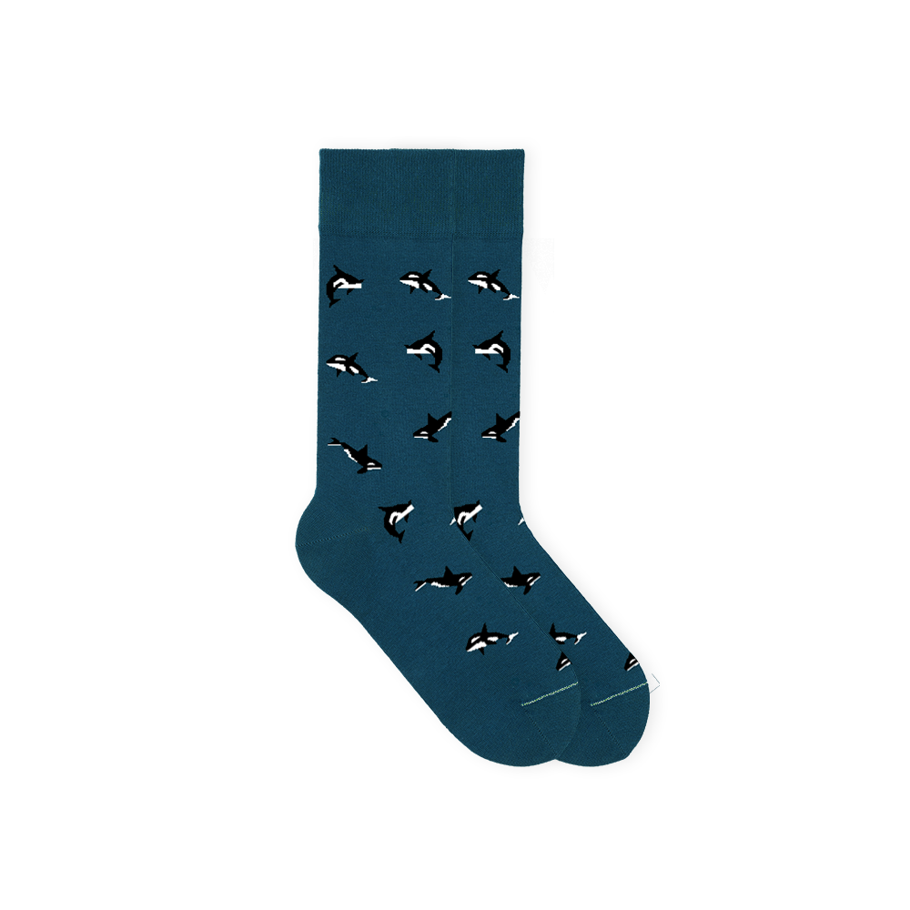 Fühle Dich mit den bunten Damensocken mit Orca-Motiv so atemberaubend wie die Meeressäuger selbst. Diese petrolfarbenen Motivsocken mit weißem Innenbund sind die perfekte Wahl für alle Menschen, die Wert auf Liebe zum Detail und hohe Qualität legen.